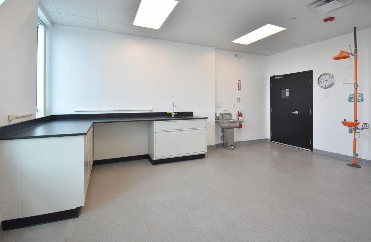 - BL2 compliant construction with vinyl-faced ceiling tiles, epoxy-painted walls, and VCT floor